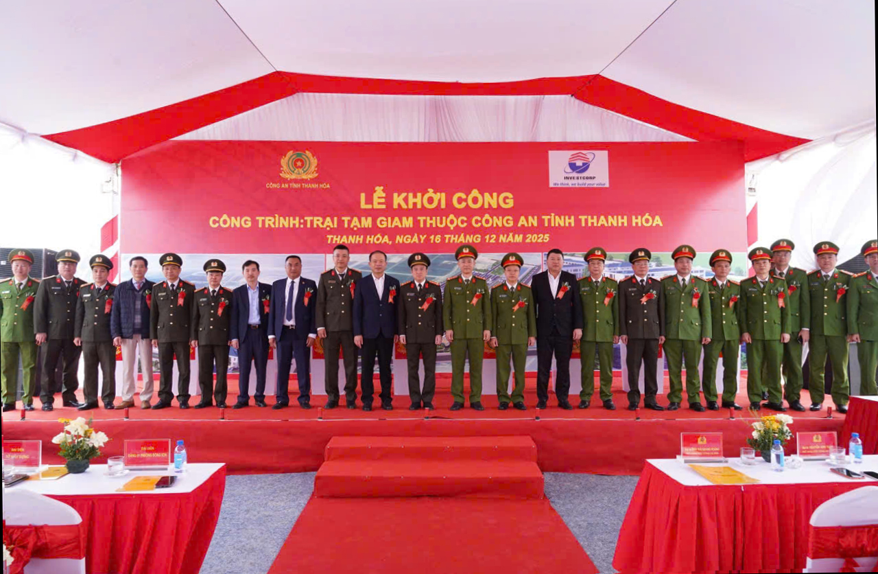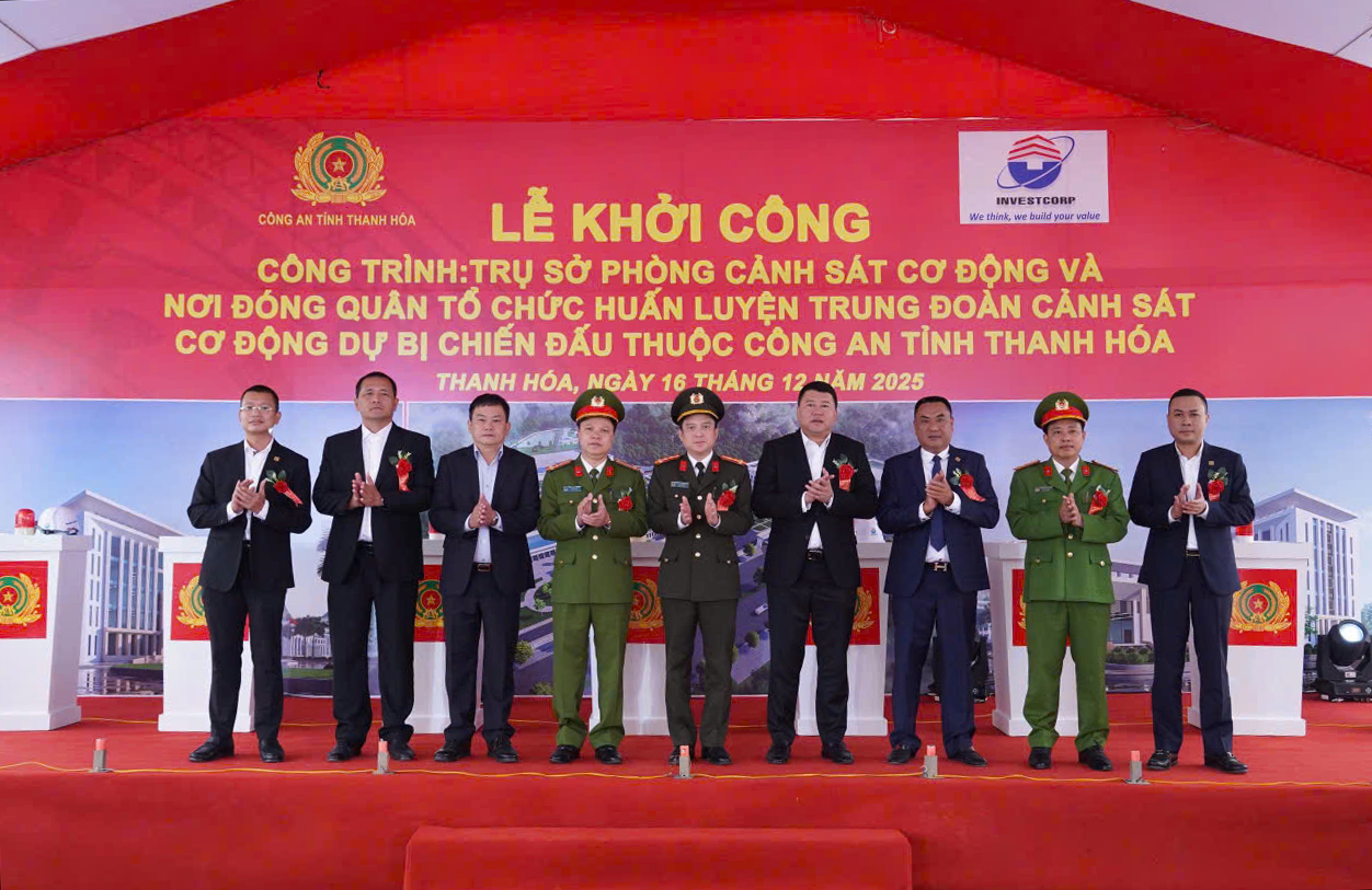 2025年12月16日上午,INVESTCORP集团与清化省公安厅共同举行了临时拘留所和机动警察部队办公总部及预备作战机动警察团驻营与训练基地项目的奠基仪式。