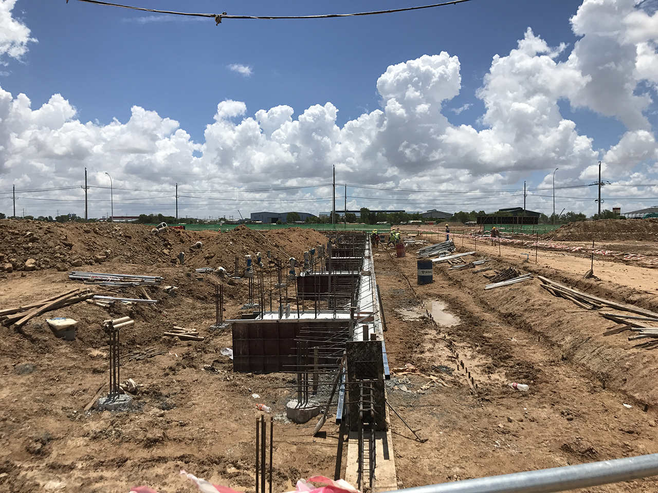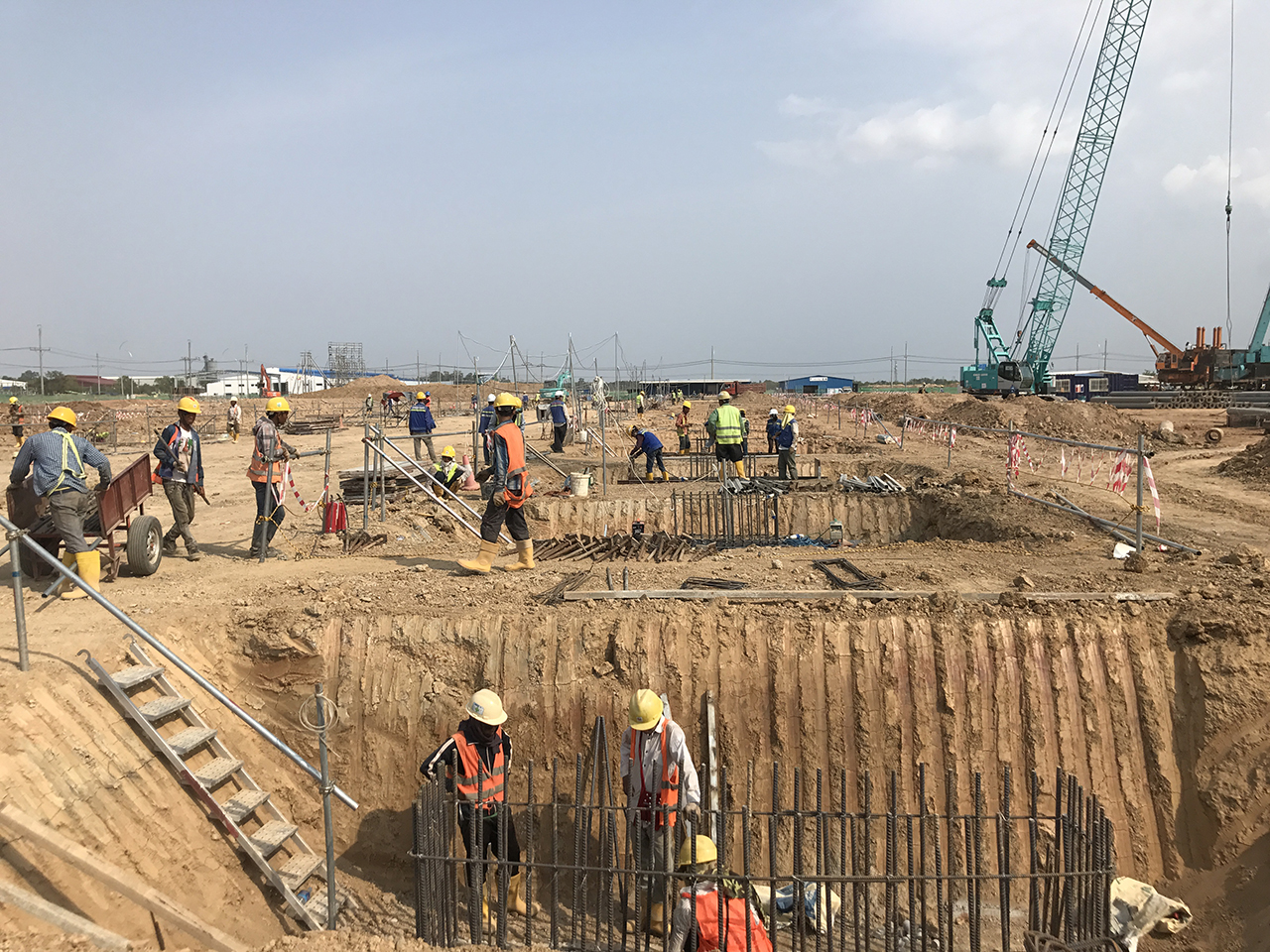 对于厂房区域的基地,缅甸 INVESTCORP 公司正在进行基础承台切割。