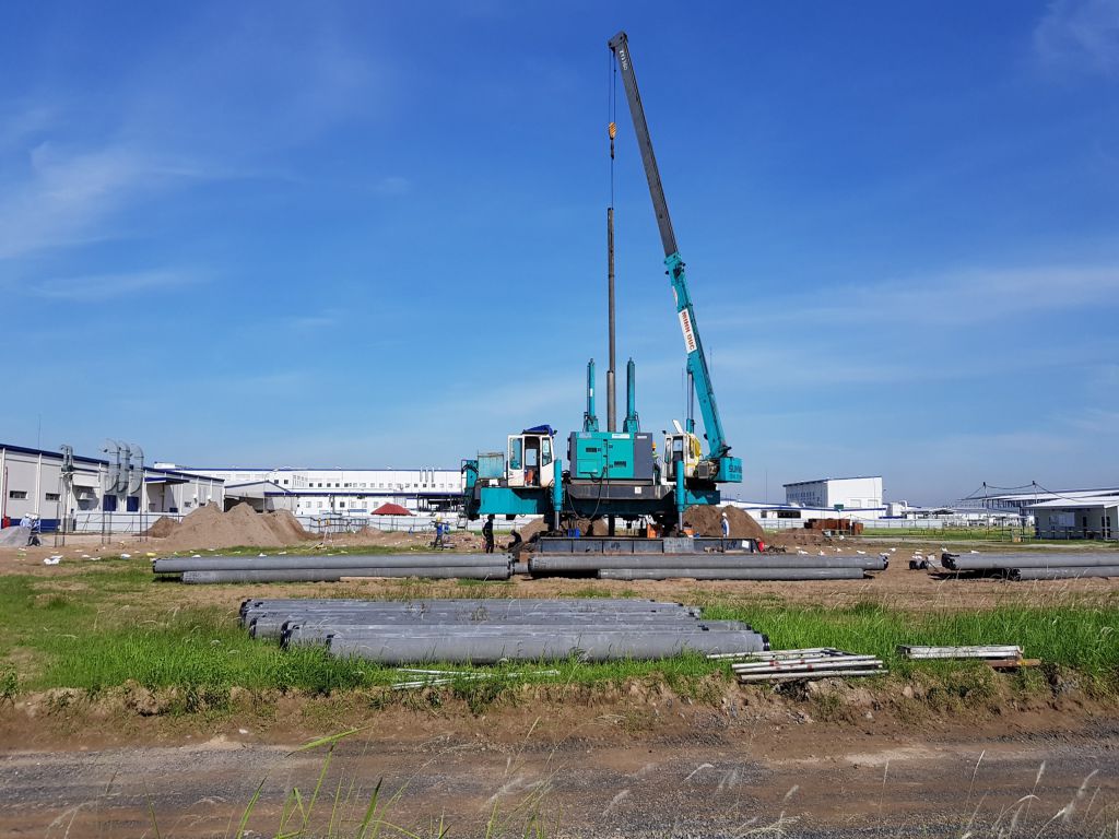 2018 年 6 月,越南三叶有限公司的建设新的冲压厂项目的挖土工作开始进行。此外,INVESTCORP 公司也将承台和支撑梁项目平行进行。按照预计,承台和支撑梁的全部工作将于 2018 年 7 月底完成。