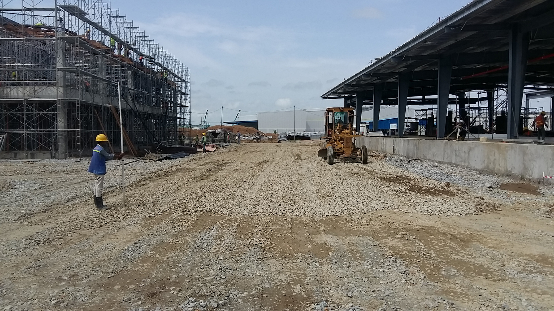 Ngoài ra, công tác bê tông nền đường cho hệ thống đường nội bộ đang được tiếp tục thực hiện. Về hệ thống thoát nước mưa ngoài nhà, 90% khối lượng công việc đã được thực hiện và toàn bộ hạng mục cũng sẽ được hoàn thành trong tháng 8/2017.