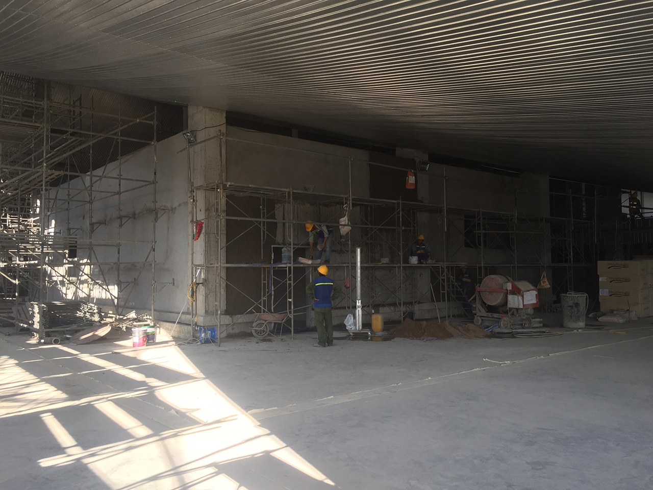 Hiện tại, Nhà thầu đang tiếp tục hoàn thiện các hạng mục xây, trát, ốp lát, trần vách thạch cao và sơn bả… tại khu vực Nhà ga hành khách phía Đông. Theo dự kiến, toàn bộ các hạng mục công việc này sẽ được hoàn thành trong tháng 12/2017 để kịp nghiệm thu và bàn giao ngày 31/01/2018.
