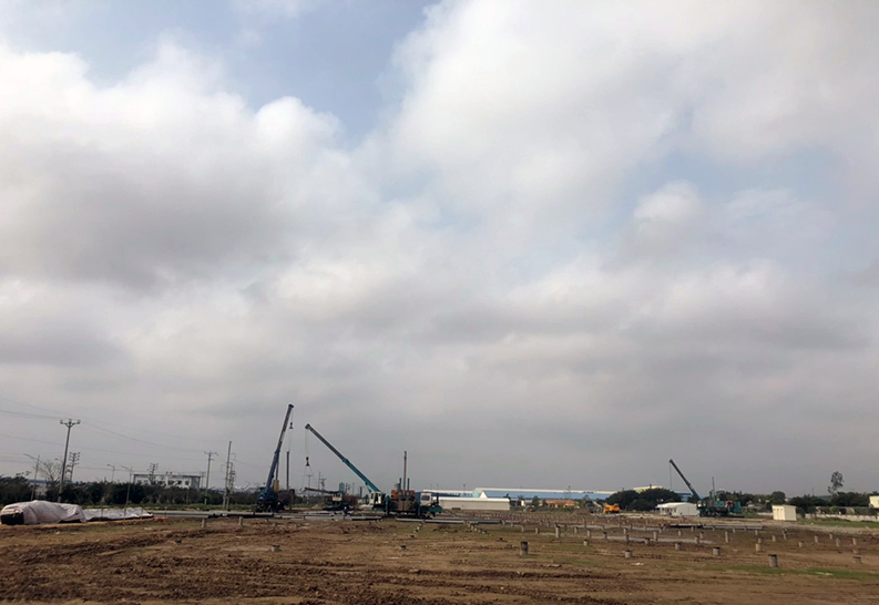 Hiện tại, INVESTCORP đã hoàn thành toàn bộ công việc tạm phục vụ cho công tác thi công dự án như văn phòng, nhà ở công nhân, đường tạm…; hoàn thành ép cọc khu vực nhà xưởng chính và đang tiến hành ép cọc các nhà phụ trợ. Trong tháng 3/2020, INVESTCORP sẽ triển khai thi công nền và cột tầng 1 nhà xưởng chính.