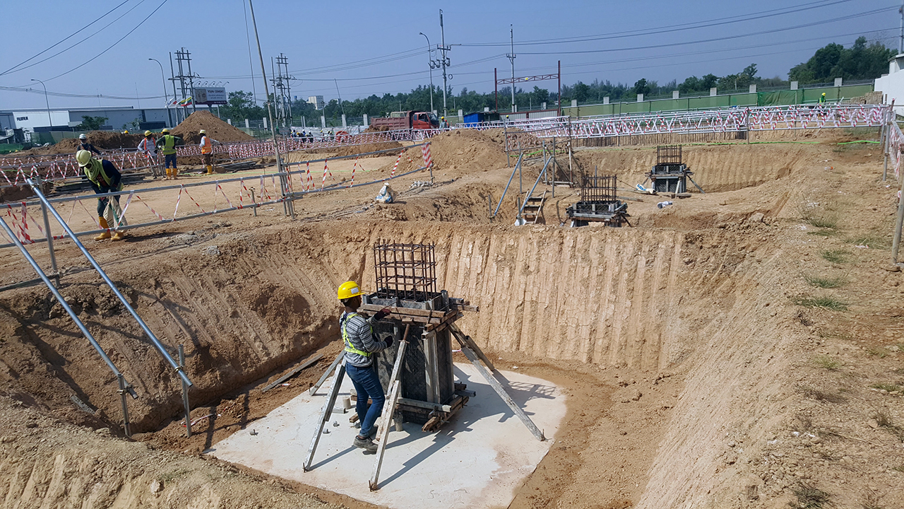 Tại khu vực nhà xưởng chính và nhà văn phòng, các hạng mục móng, dầm, nền đang được triển khai và dự kiến sẽ được hoàn thành trong tháng 5/2019.