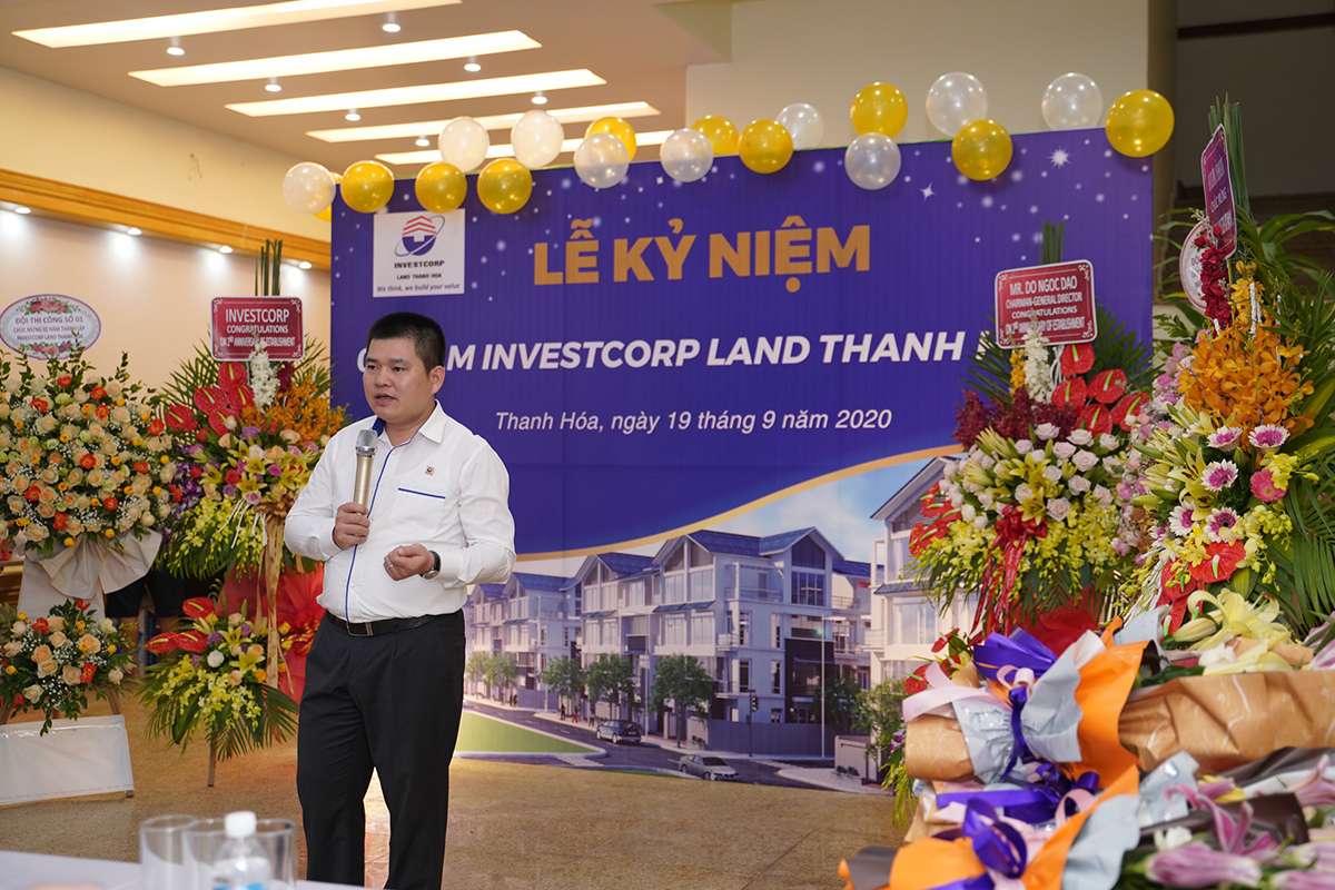 Ngày 19/9/2020, lễ kỷ niệm 2 năm thành lập Công ty TNHH MTV INVESTCORP Land Thanh Hóa được tổ chức tại trụ sở Công ty số 166 Triệu Quốc Đạt, phường Điện Biên, thành Phố Thanh Hóa. Tham dự buổi lễ có sự góp mặt của Ban lãnh đạo cùng toàn thể cán bộ nhân viên trong Công ty.