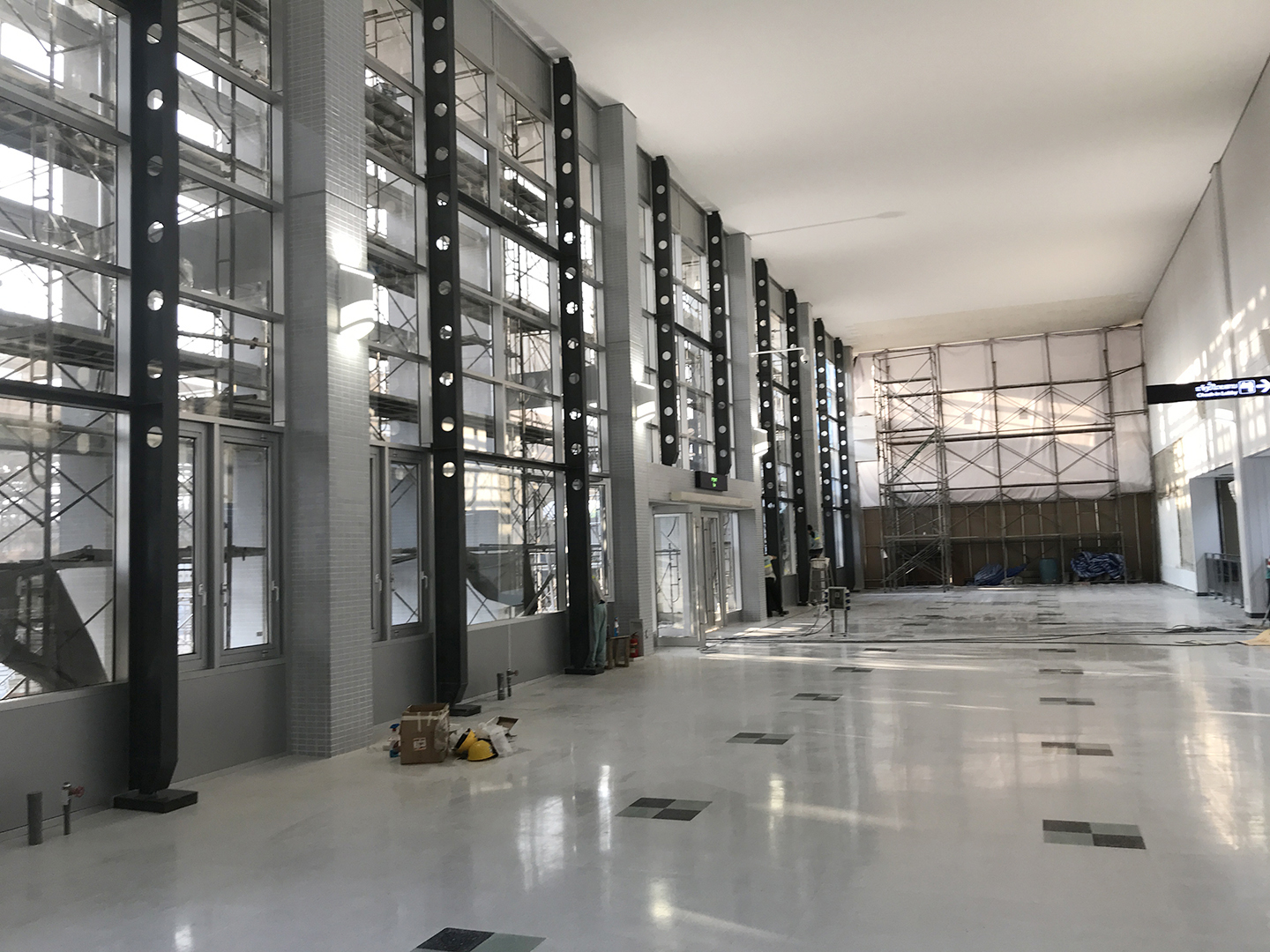 在大楼东边区,所有室内项目已经递交给业主投入使用。目前施工承包商继续在室外工作如混凝土沟、路演和混凝土面进行施工。
