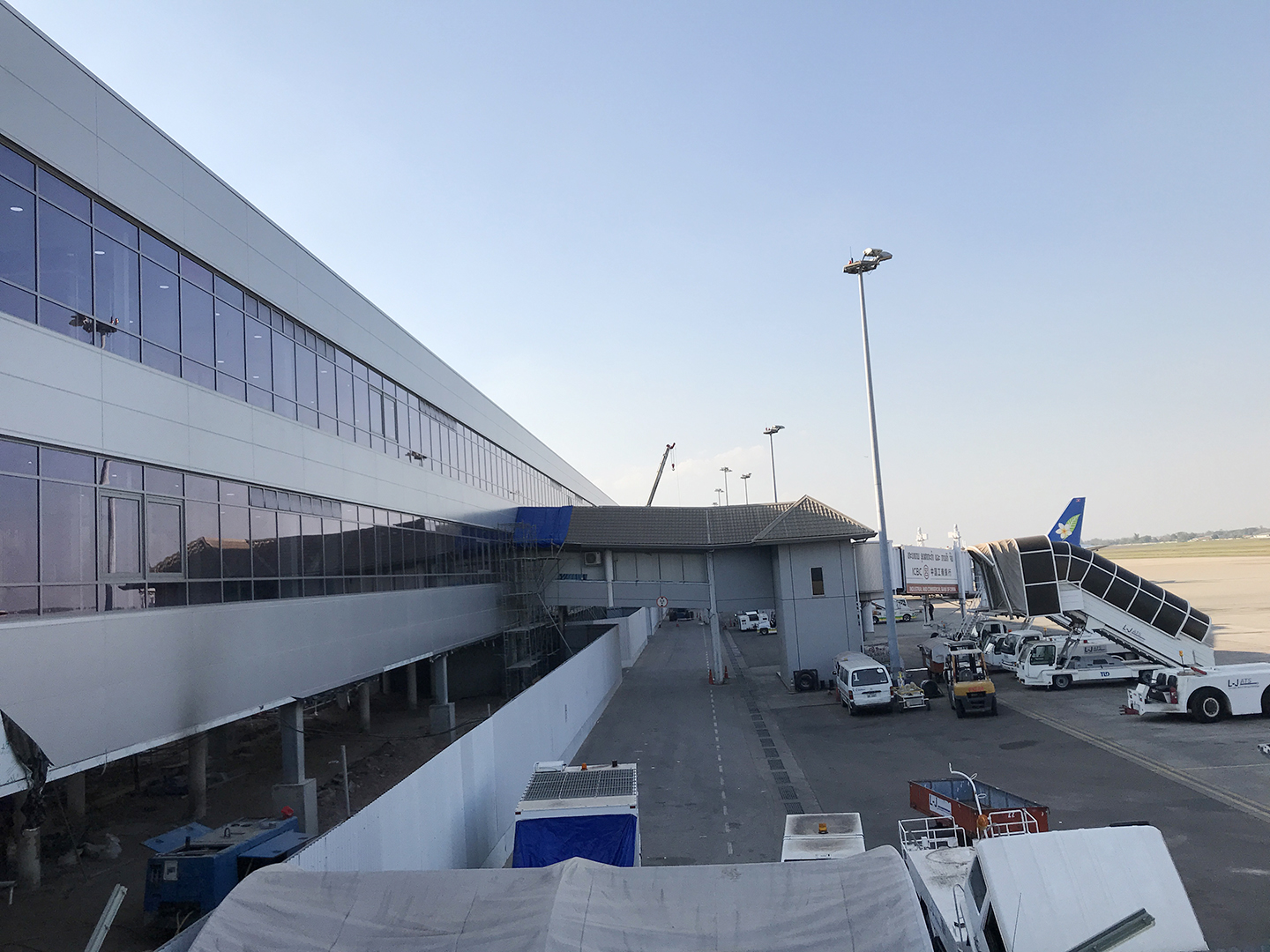 2018 年 1 月份在老挝万象国际机场大楼扩大项目的施工进度情况。