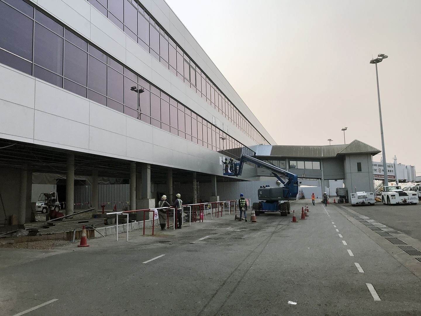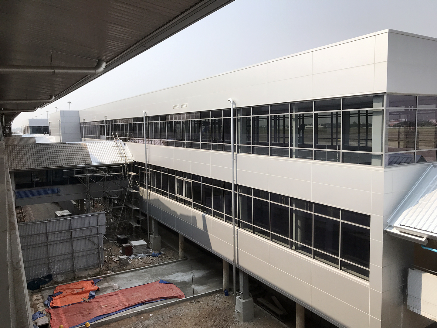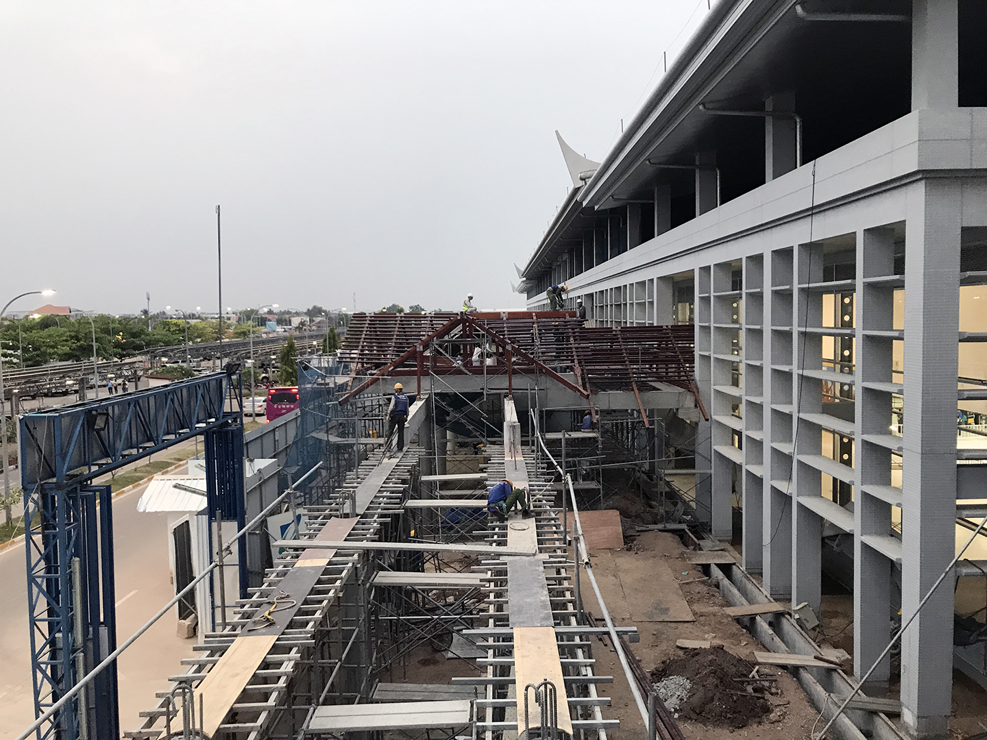 于 2018 年 3 月在老挝万象国际机场大楼扩大项目的施工情况