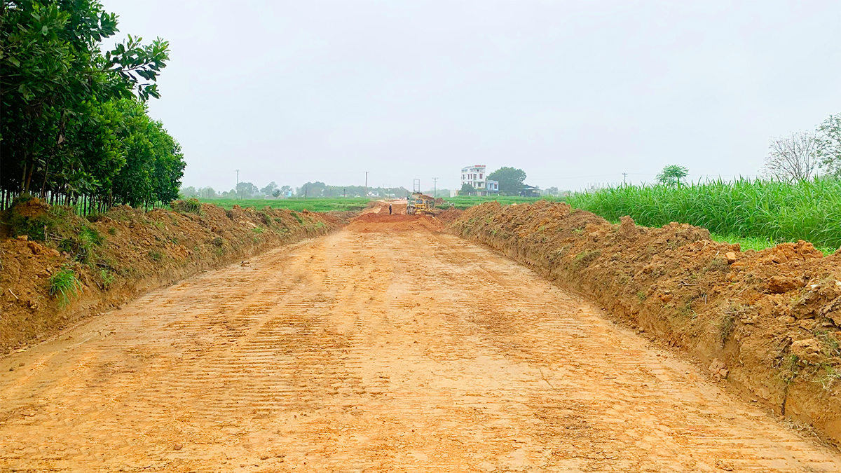 2022 年 3 月末,清化 INVESTCORP Land一成员有限公司选择了一个地方搭建了临时棚屋,并组织了机械、材料和人力资源的聚集的地点,以便建设春兴乡连接到寿春镇接至蓝山-金星城市区的道路。当月实施的工程包括:路基开挖、疏浚有机土达到 25%; K95 路基建设完成 12%,K98 完成合同额 5%。
