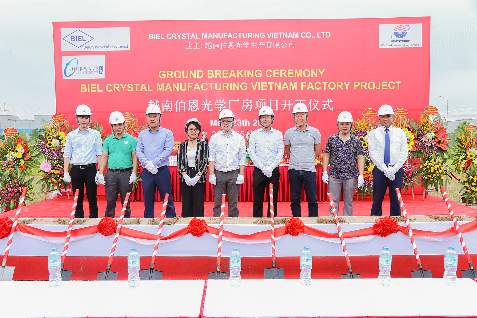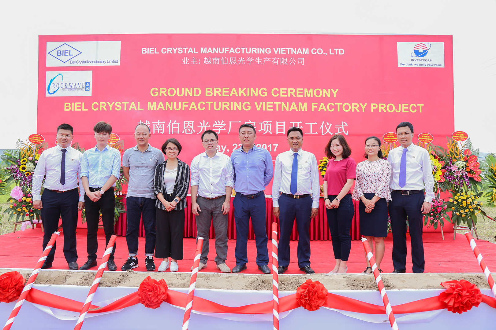 于 2017 年 5 月 23 日上午在北宁省慈山县级市、浮枕乡,VSIP 工业区第 115/116a/123b/124 隆重开工仪式。有越南 Biel Crystal 生产厂当业主、香港石粮机电设备有限公司分包商、INVESTCORP 建设投资及发展股份公司当施工承包商的参与开工仪式。