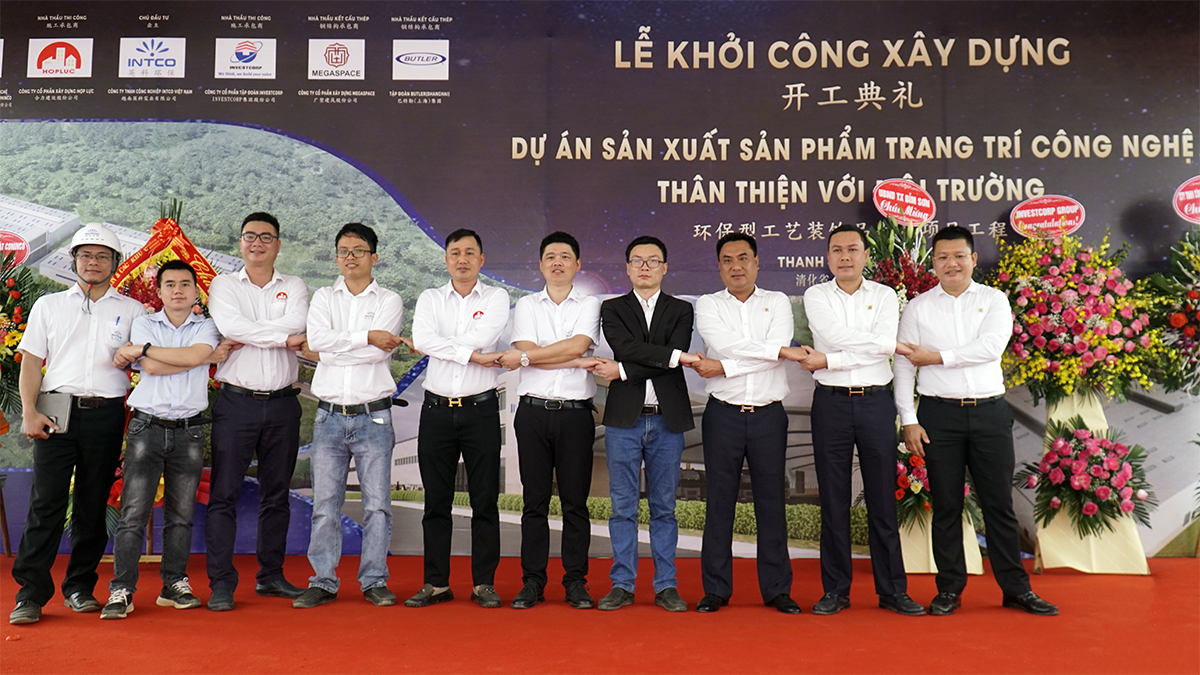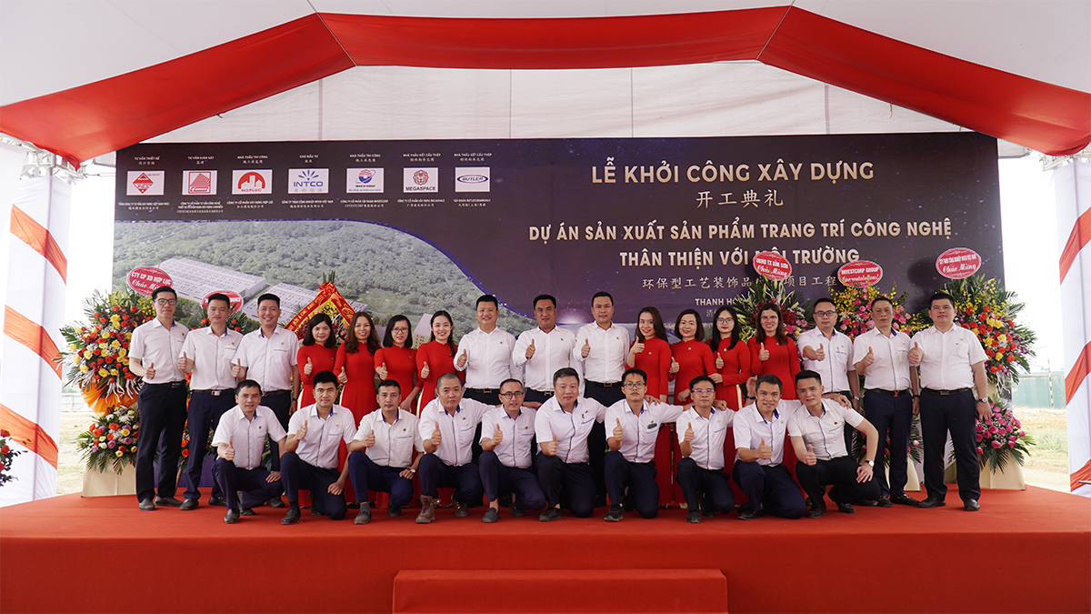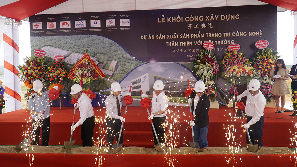 2021 年 04 月 22 日上午,越南英科实业有限责任公司的环保型工艺装饰品生产项目工程开工典礼在清华省,扁山市,北山坊,扁山工业区 A 区 CN-01/02 隆重举行。出席典礼的有义山经济区及清华省工业区管理部代表、清华省海关局代表、扁山市委员会代表、投资者代表、施工承包商及其他来宾。