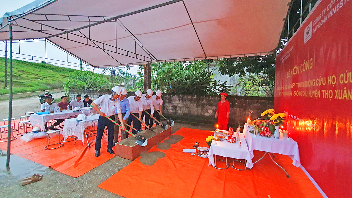 2022 年 11 月 19 日,清化INVESTCORP Land一人有限公司举办了清化省寿春县长春乡到周河左堤的救援路线改造升级工程奠基仪式。寿春县项目管理、长春乡人民委员会、清化INVESTCORP Land公司董事会和施工队队长的代表出席了仪式。
