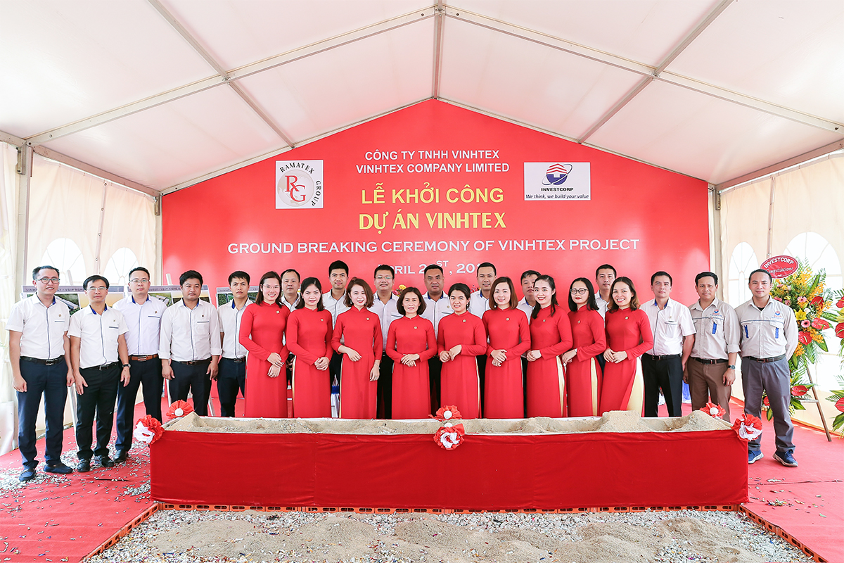 2019 年 4 月 21 日,Vinhtex 项目启功仪式由 INVESTCORP 公司在 Nghe An VSIP 都市和服务区举办 - 位于 Nghe An 省 Hung Nguyen 县,Hung Tay 乡。出席仪式的有业主 - Ramatex 集团的代表,业主的贵宾,Nghe An VSIP 管理委员会和总承包商 - INVESTCORP 公司的代表。
