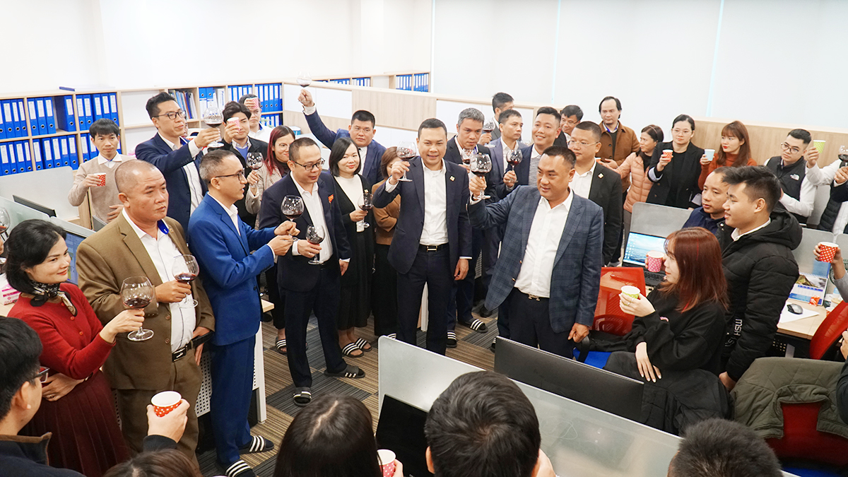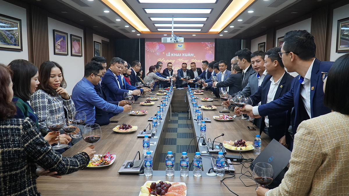 董事长致辞后,董事会及全体员工举杯祝贺新的一年。