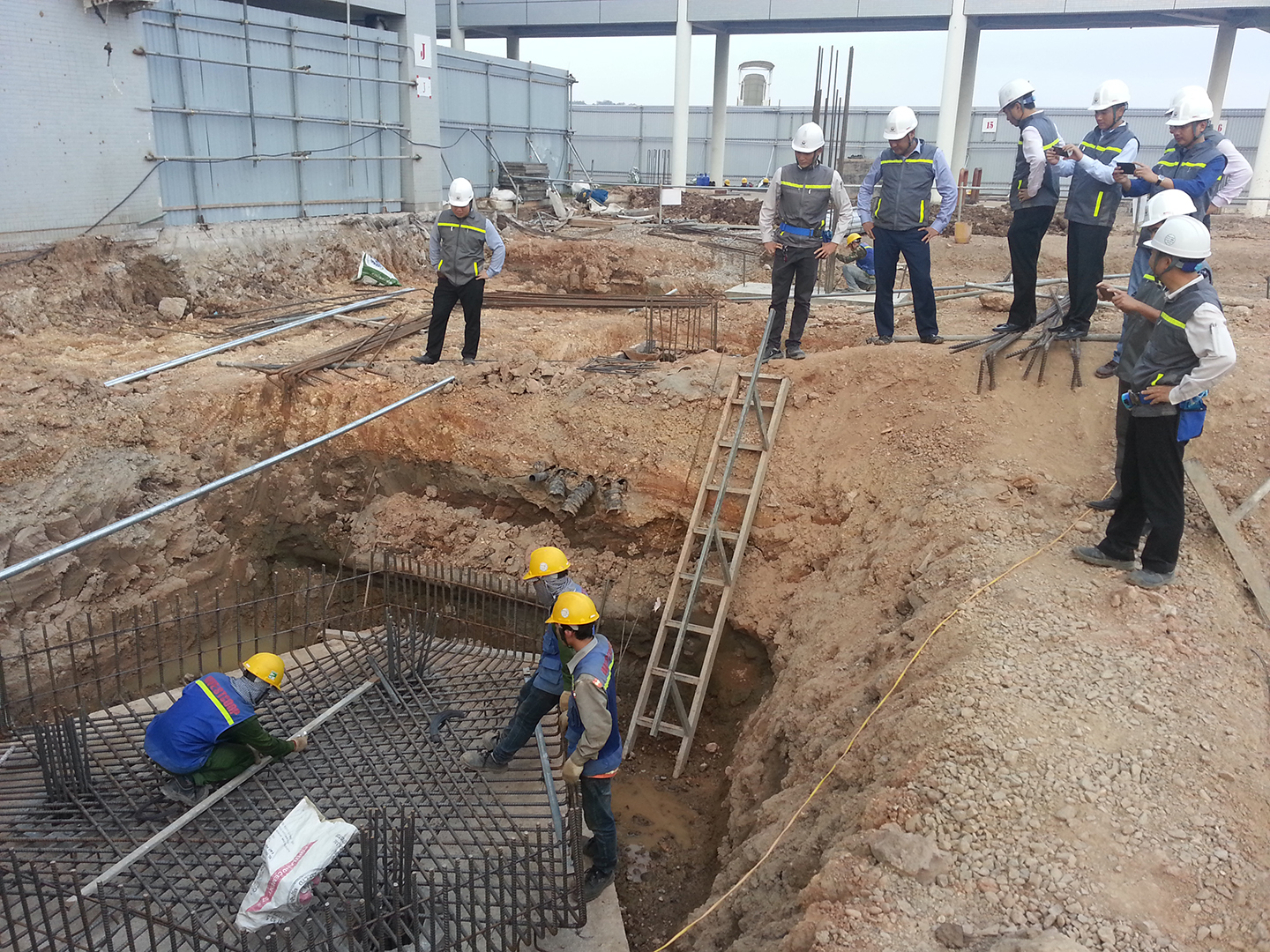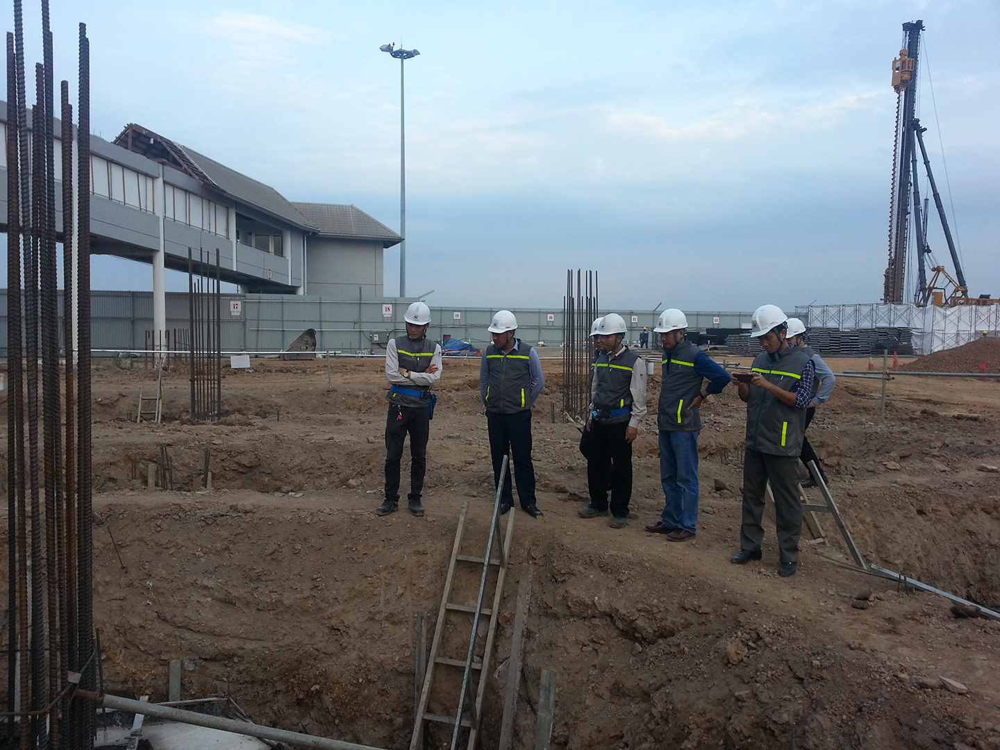 目前,在机场大楼西边的第四层楼地板结构准备完成,平行于在机场大楼东边基础施工也正在展开,趁着这次检查,公司领导已对 Hazama Ando Corporation 公司的主要承包进行碰头会,以为了业主提出要求尽快施工进度的保证。