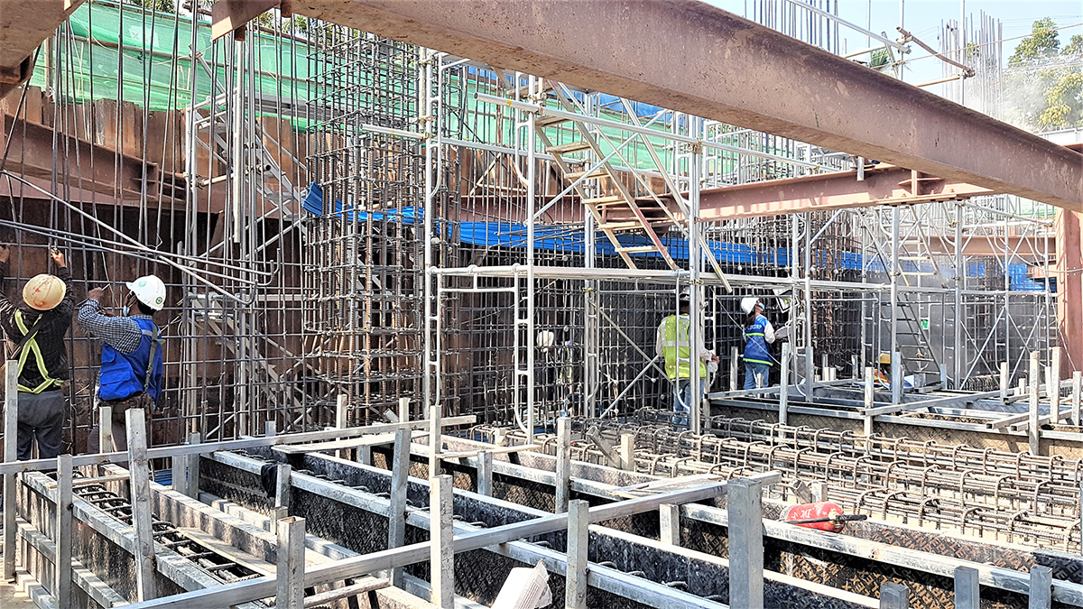 2021 年 01 月,缅甸 INVESTCORP 已完成地下室地面、地基的全部钢筋混泥土结构工作并继续开展地下室的其他工作,包括浇筑墙体钢筋混泥土、外墙防水、填砂、拆除支撑桩系统。