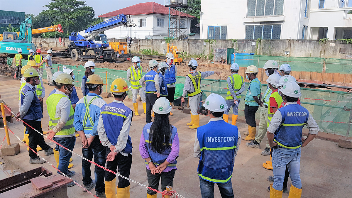 2020 年 9 月,缅甸 INVESTCORP 公司完成了打桩工作,并着眼于挖掘土壤,同时安装了其余的防打桩支撑系统。在地下室中开始部署的钢筋混凝土结构的施工包括浇注混凝土,加固加工和安装模板。