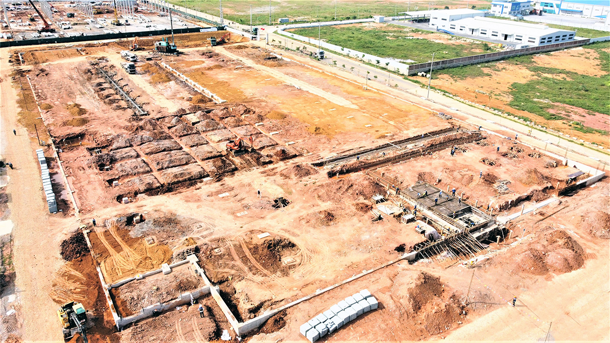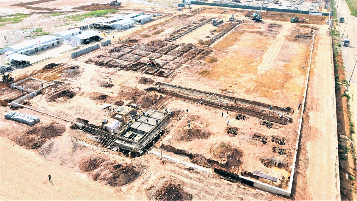 2021 年 6 月下旬,15 号 INVESTCORP 完成了环保型工艺装饰品生产项目厂房及办公楼整体打桩工作;完成厂房基础混凝土和基础支撑架,30% 冷罐盖板混凝土,沟底及沟壁混凝土。 地下室和消防水箱的挖掘工作也已完成。