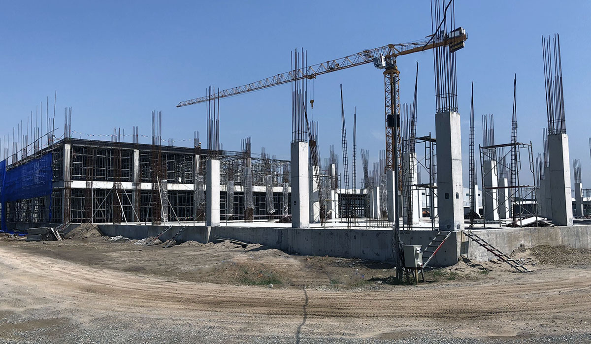 截止 2020 年 4 月,INVESTCORP 完成了主要工厂区域的建设,包括砂型找平,基层铺展和压实,防潮尼龙衬里,模板的安装,电焊网,混凝土浇筑以及打混凝土表面。