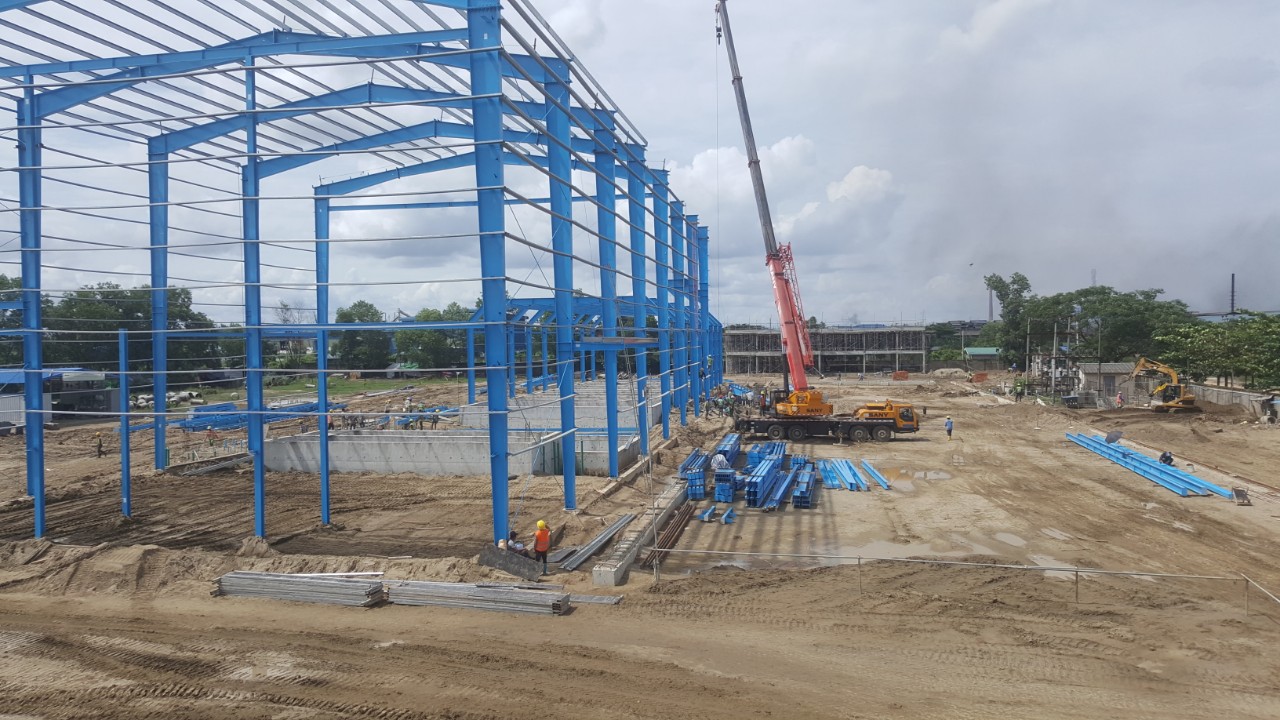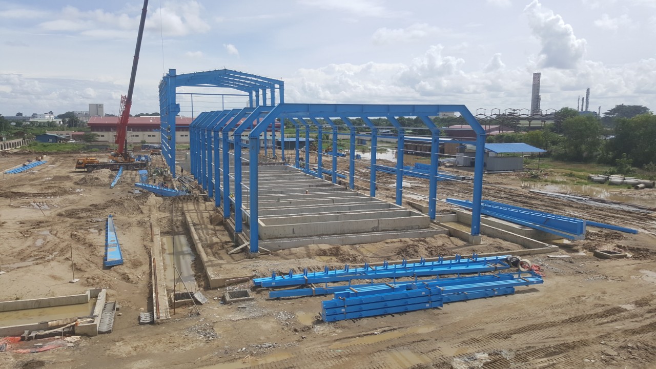 辅助室区域的全部基础已施工完成。目前,柱结构和屋顶梁的工作正在继续施工。完成内部道路的填沙工作之后,缅甸 INVESTCORP 公司正在进行土层的施工。此外,雨水排水系统已完成 80%,预计将于 2018 年 7 月完成。
