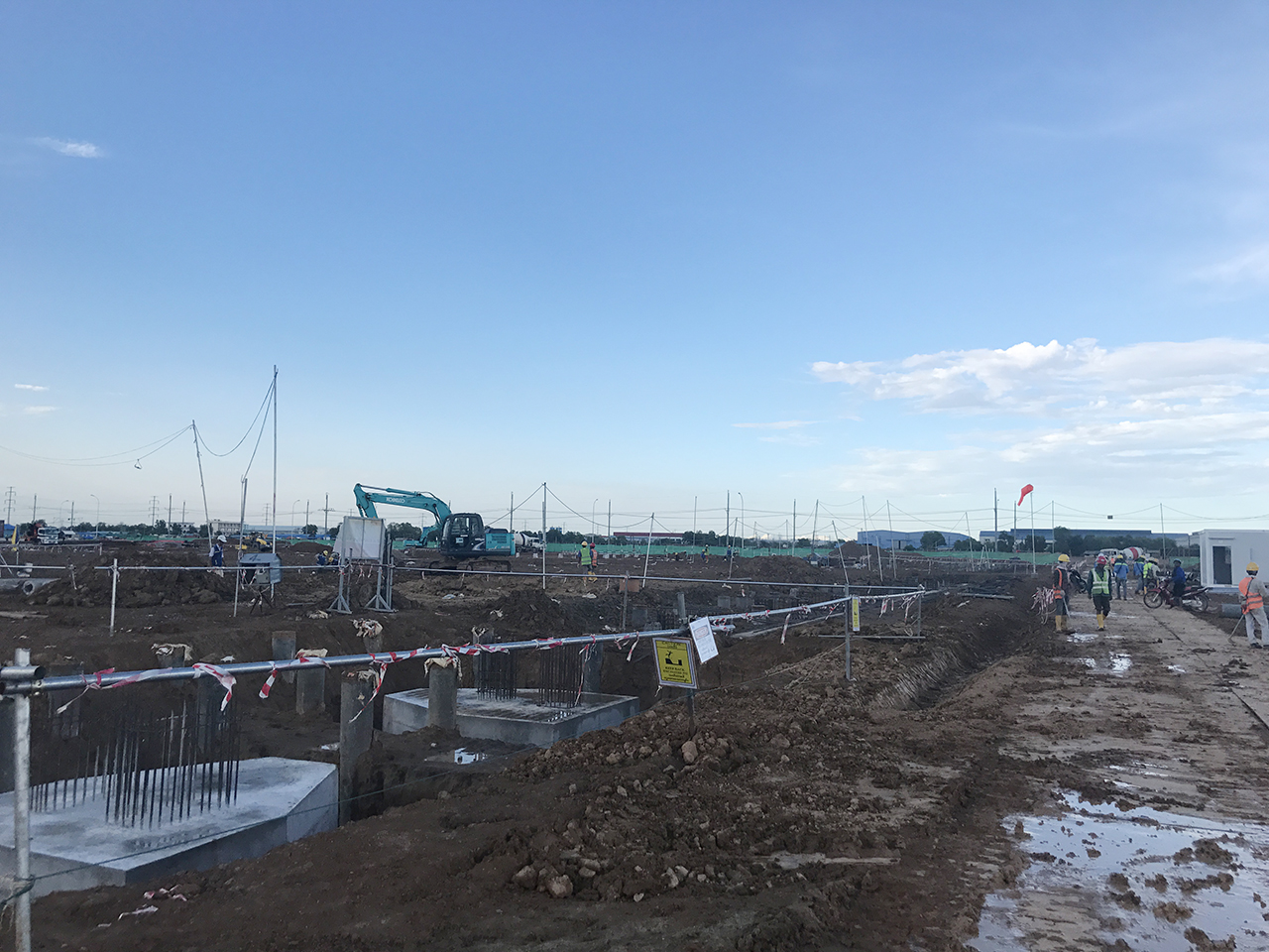 对于厂房区域的基地,缅甸 INVESTCORP 公司正在进行基础承台切割。