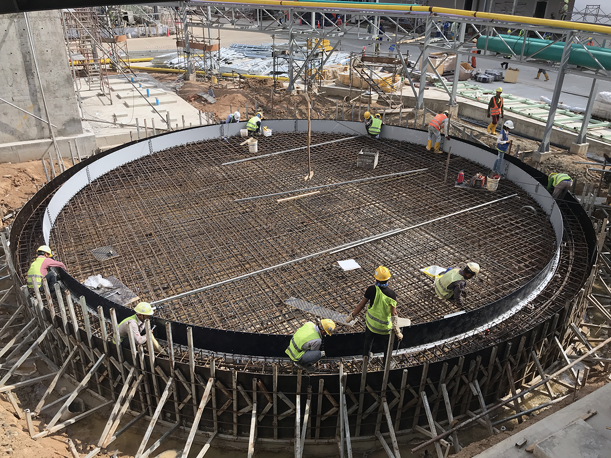 车间内 后发生的 机械 下面的基础 施工 完成 ,移交给业主 并 已经 开始使用。现在,INVESTCORP 缅甸公司 正在进行清洁工作 和伸缩缝胶液泵送。