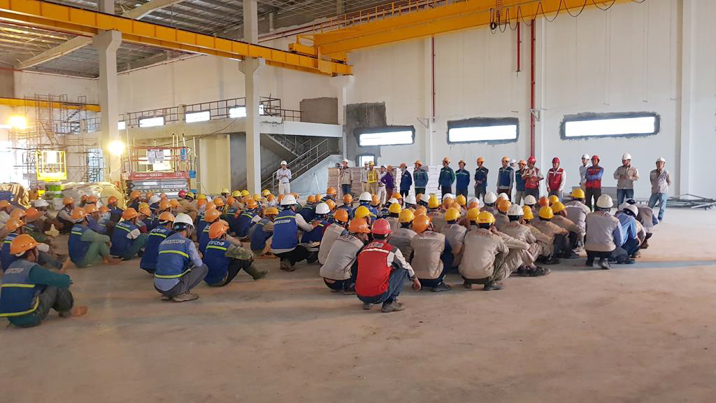 截至 2018 年 9 月底,越南三叶有限公司-新冲压厂的建设项目的砌墙和地板混凝土工作已施工完成。目前,INVESTCORP 公司正在进行抹面工作并已完成 90%。 预计 2018 年 10 月 15 日前将完成抹面工作。