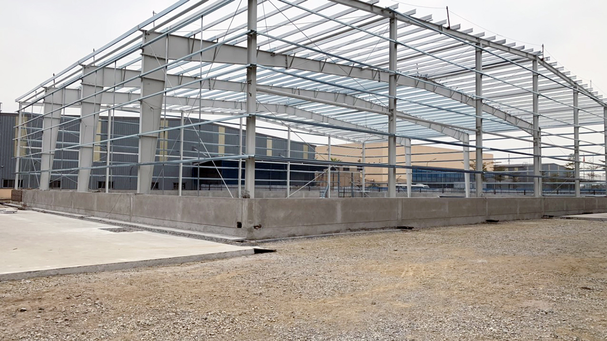 Peony 工厂 - 新仓库项目于 2020 年 12 月 01 日开工,面积为 1760m2,为钢结构房屋,铁墙和 1m 高的混泥土墙和基础结合。