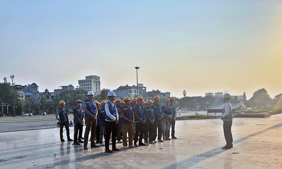 主席台改造,目前 INVESTCORP Land Thanh Hoa 完成了 70% 的 前面石板砌贴,替换了前面的石板饰面。预计 2019 年 4 月 20 日完成铺路石前面和后整理的工作,2019 年 4 月 16 日之前将打鼓的鼓腔进行涂漆和抛光。