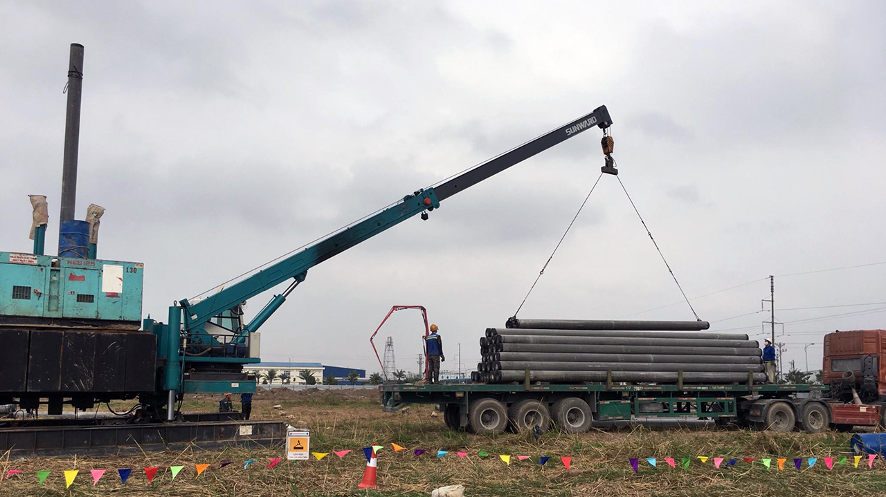 2019 年 2 月底,在 Ramatex Nam Dinh 纺织服装厂项目的纺织车间,INVESTCORP 公司已经完成了混凝土基础的施工,填筑基坑和进行施工基础支架结构。预计 2019 年 3 月,混凝土基础支架结构将完成,以进行建造工厂地面、墙壁建造 和钢结构的安装。