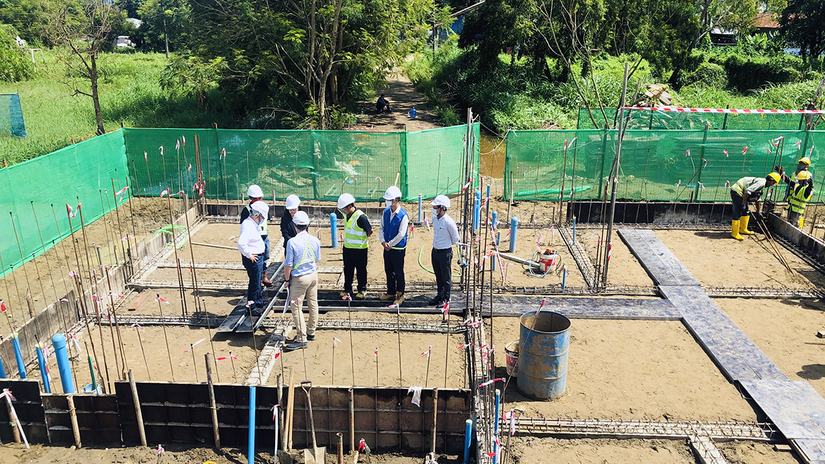2020 年 9 月,在完成混凝土桩的压制之后,缅甸 INVESTCORP 实施了整个建筑物的结构框架的建造。与桩头有关的工作也同时进行。目前,INVESTCORP 缅甸公司已完成基础结构,墙体建设以及模板和地板加固的制作和安装。
