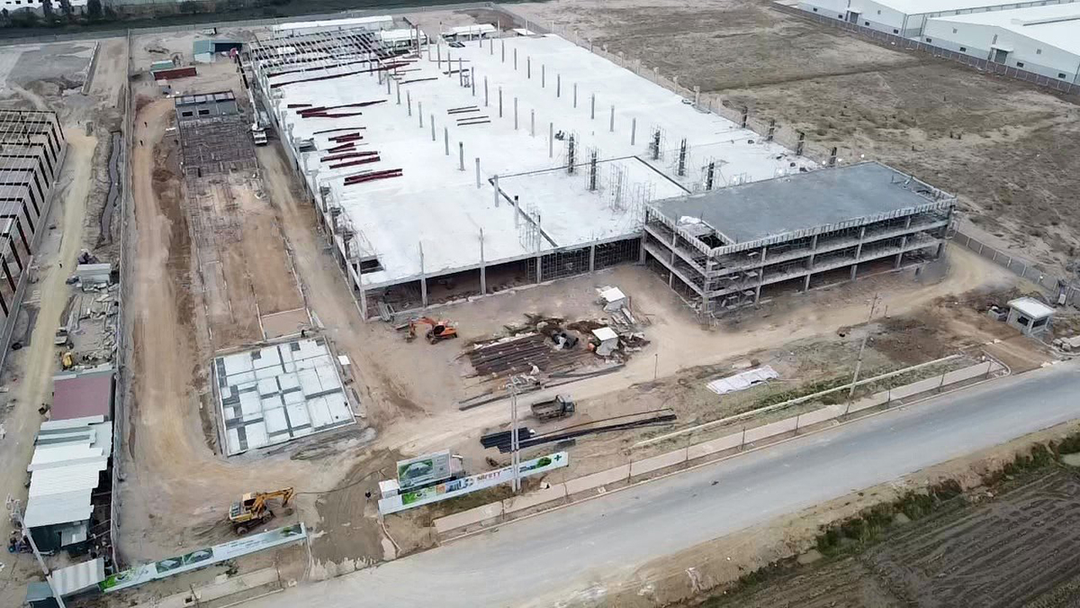 2020 年 12 月底,信佳国际工厂(越南)项目的厂房和办公室的全部混凝土地板均已完成。 在车间区,INVESTCORP 已完成一层的 20% 地面工作,在二层开始钢结构架设,同时进行构建施工和天花板混泥土涂漆。