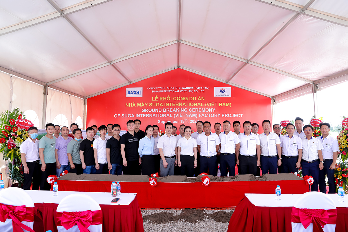 On the morning of September 18, 2020, the Groundbreaking ceremony of Suga International (Vietnam) Factory Project was held at lot CN11-3, Que Vo 3 Industrial Park, Que Tan commune, Que Vo district, Bac Ninh province. The ceremony was fully attended by representatives of Investor - Suga International (Vietnam) Company Limited, representatives of Management Board of Que Vo 3 Industrial Park and representatives of Construction Contractor - INVESTCORP Company.