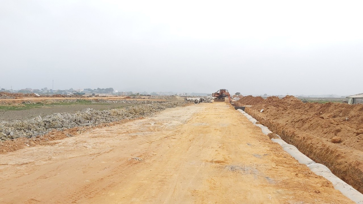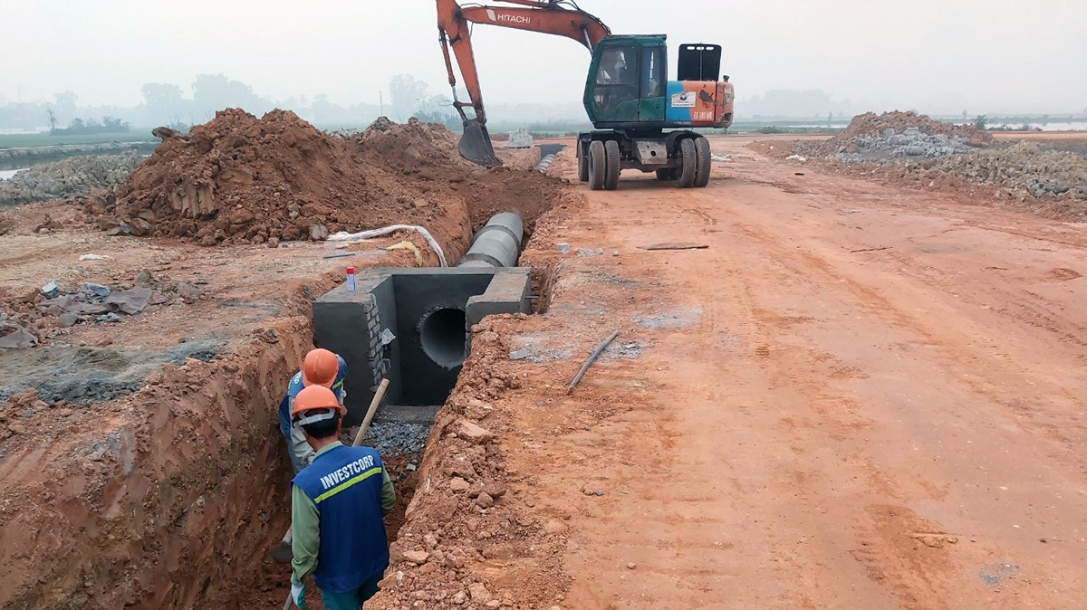 At the end of January 2021, INVESTCORP Land Thanh Hoa continued constructing and completing the compaction of K95 soil on the sidewalk, casting drainage structures and gathering macadam to the site. At present, INVESTCORP Land Thanh Hoa is constructing and installing drainage culverts on the roads.